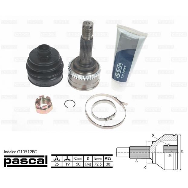 Cap planetara spre roata (25/19/50mm/ABS:38) stg/dr HYUNDAI ATOS, ATOS PRIME 1.0/1.1 02.98-
