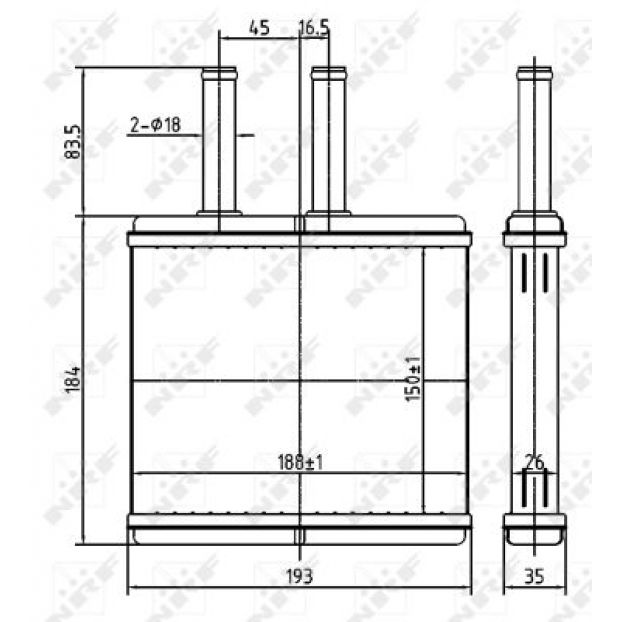 Nagrzewnica (188x148x26) CHEVROLET AVEO, KALOS 1.2-1.5 05.03-