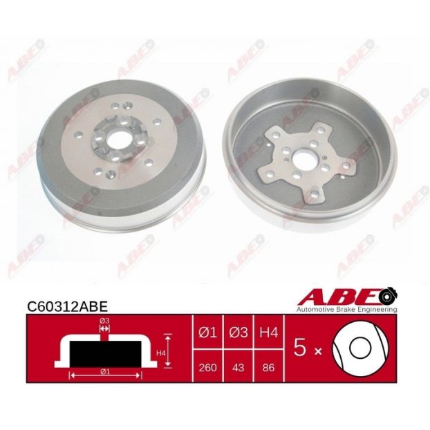 Etichete: Tambur frana, ABE, C60312ABE, SFB4EE06, 0K04026251, 360303, 56K0002, C60312JC, J3400316, TAK02, 87083099