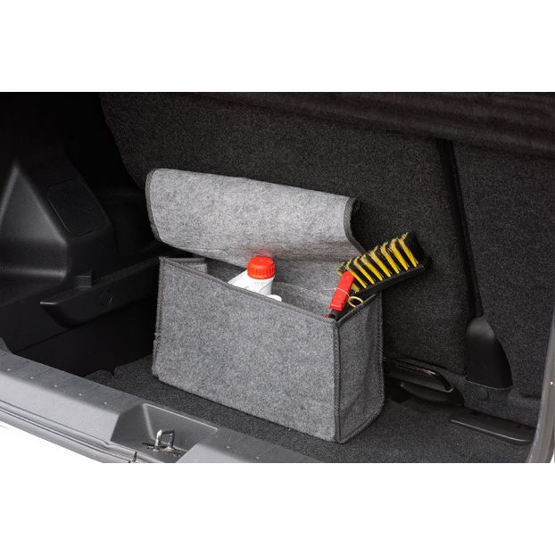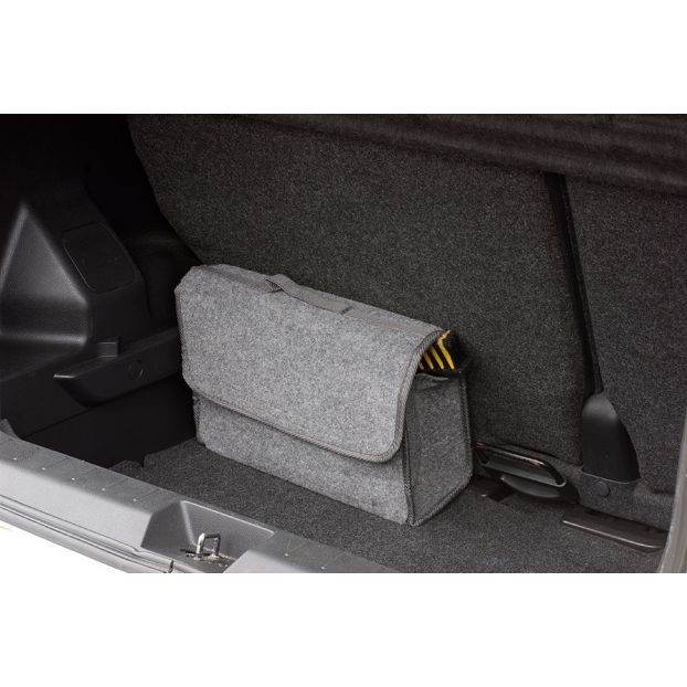 Praktyczny organizer do baga¿nika. ROZMIAR L (43X30 cm). Wyposa¿ony w rzepy u³atwiaj¹ce mocowanie. Idealny do przechowywania ganicy, trójk¹ta ostrzegawczego, apteczki oraz drobnych narzêdzi.