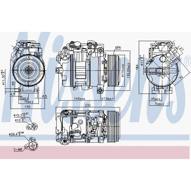 Kompresor klimatyzacji BMW 1 (E81), 1 (E82), 1 (E87), 1 (E88), 3 (E90), 3 (E91), 3 (E92), 3 (E93), 5 (E60), 5 (E61), X1 (E84) 2.0D/3.0D 03.03-06.15
