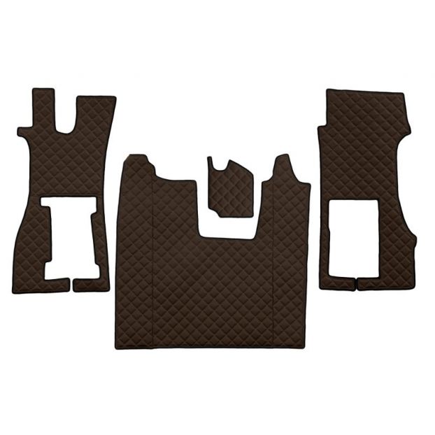 Covor de podea F-CORE se potrivește: SCANIA, pe intregul etaj, scaun pneumatic pentru pasageri, ECO-LEATHER, cantitate in set 3 szt. (material - eco-piele, culoare - maro) se potrivește: SCANIA L 09.1