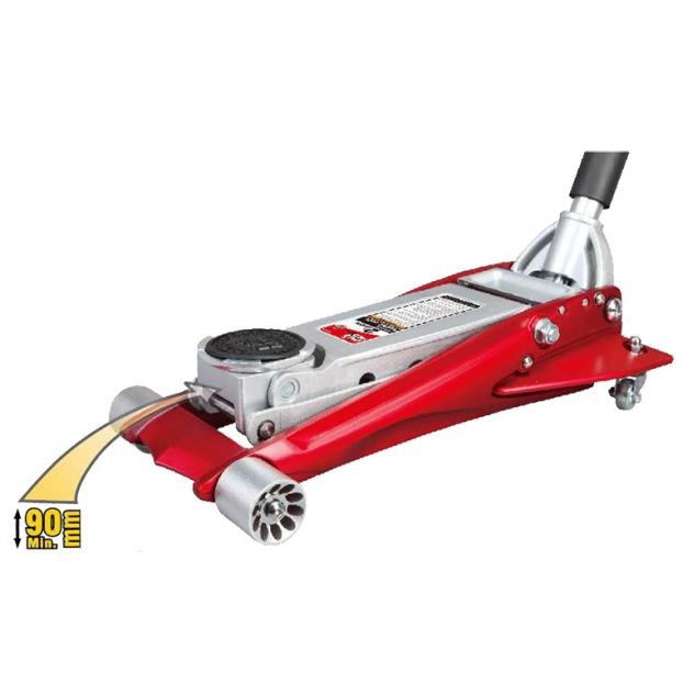 Cric mobil broasca din aluminiu, capacitate de ridicare: 2t, inaltime de ridicare: 90-440mm, sistem de ridicare rapida fara sarcina, pistoane duble. PROFITOOL