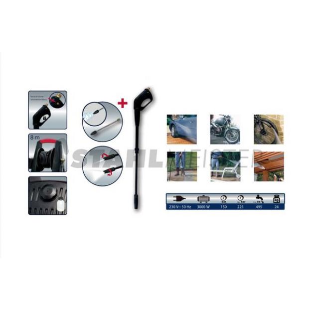 STAHLMEISTER Myjka wysokocinieniowa max 225 bar, 3000W, 50Hz/230V, zu¿ycie wody max 6,8l/min; zbiornik na detergent; lanca turbo; pompa mosiê¿na